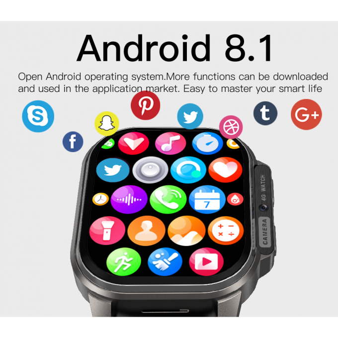 4G Smart Watch for Android 8.1 Flash Memory and 2.02inch IPS Square Screen