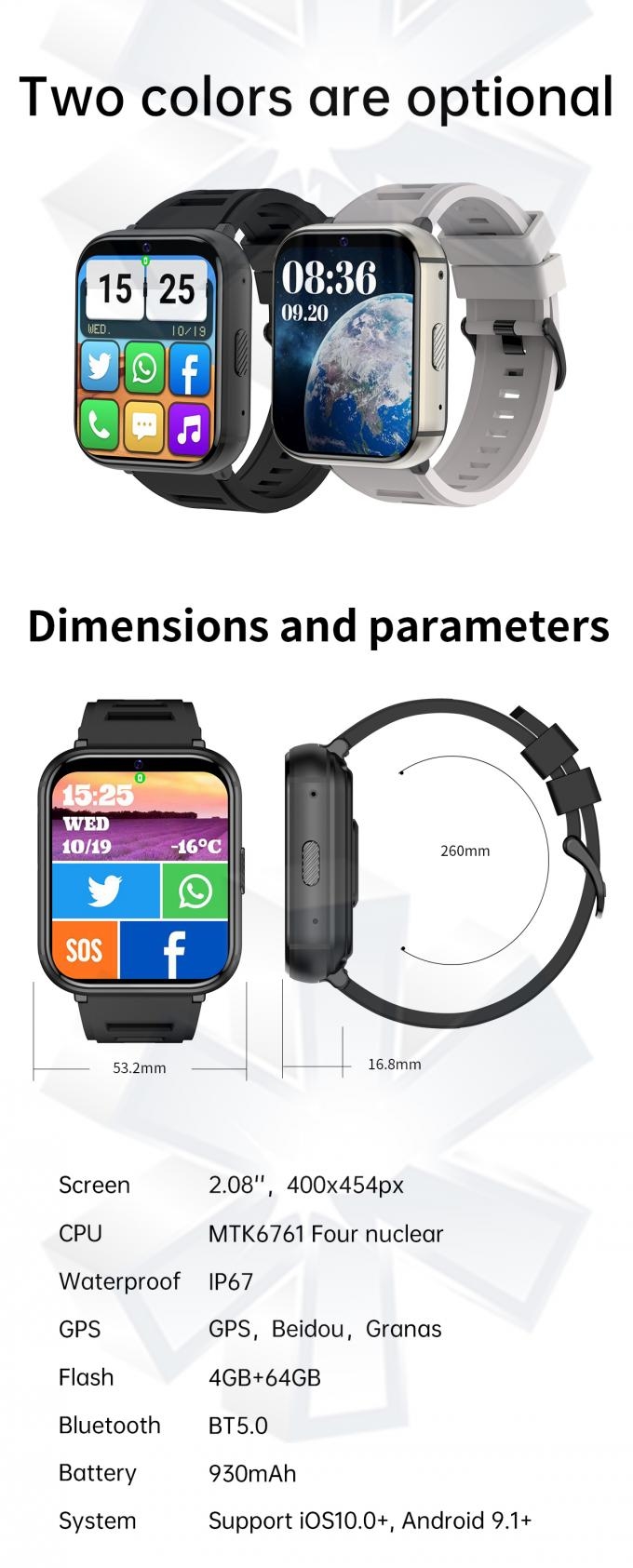 New S999 4G Smartwatch Android 11 OS MTK6761 2.0+8.0MP Dual Camera 4+64GB BT GPS WiFi Phone Call