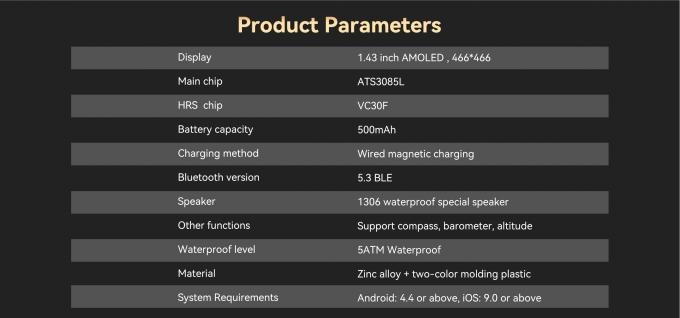 | Display | 1.43inch AMOLED HD display,DPI:466*466 |