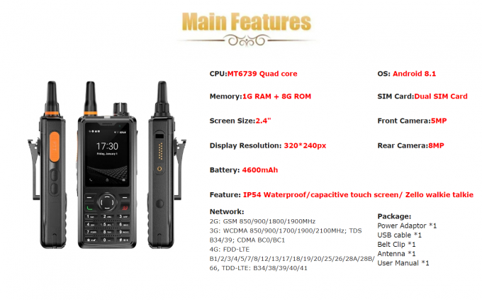 | Network Bands | 2G: GSM 850/900/1800/1900MHz |