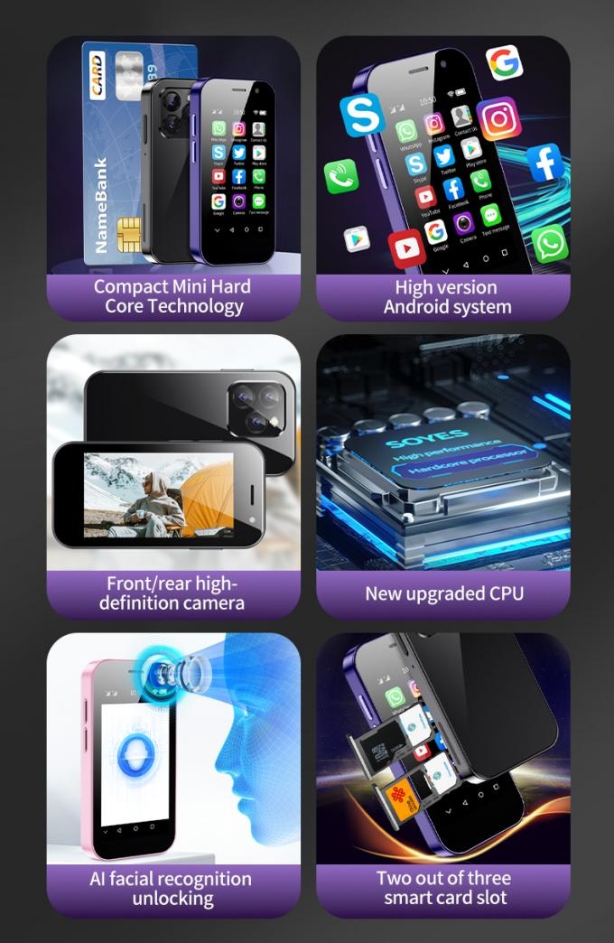 XS15 PRO EU Version 3.0'' Android 9.0 4G Small Mobile Phone Face ID Type C Dual SIM