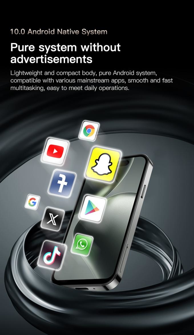 XS16 3.0'' Android 10.0 Mini Android Phone 4G Quad Core 2000mAh 2+16GB