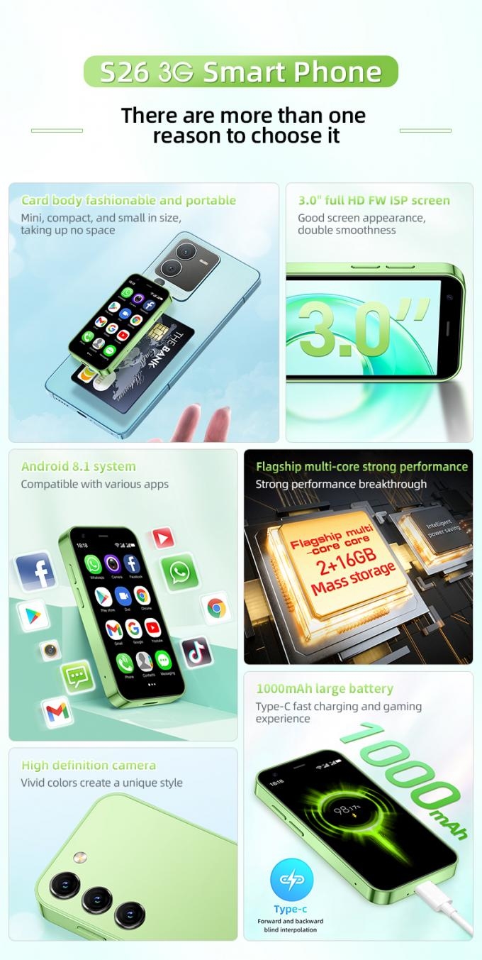 S26 3G mini Smartphone 2+16GB 3.0''Android 8.1 Dual SIM 1000mAh WIFI GPS