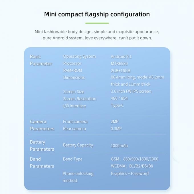 Mini 3G Smart Phone 3.0''Screen 2+16GB Type-C Charging 4.0 Bluetooth 2.4G Wi-Fi