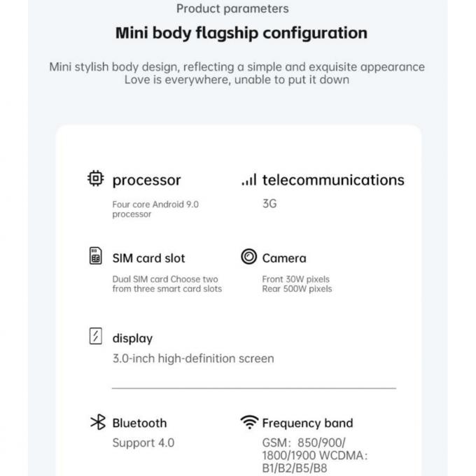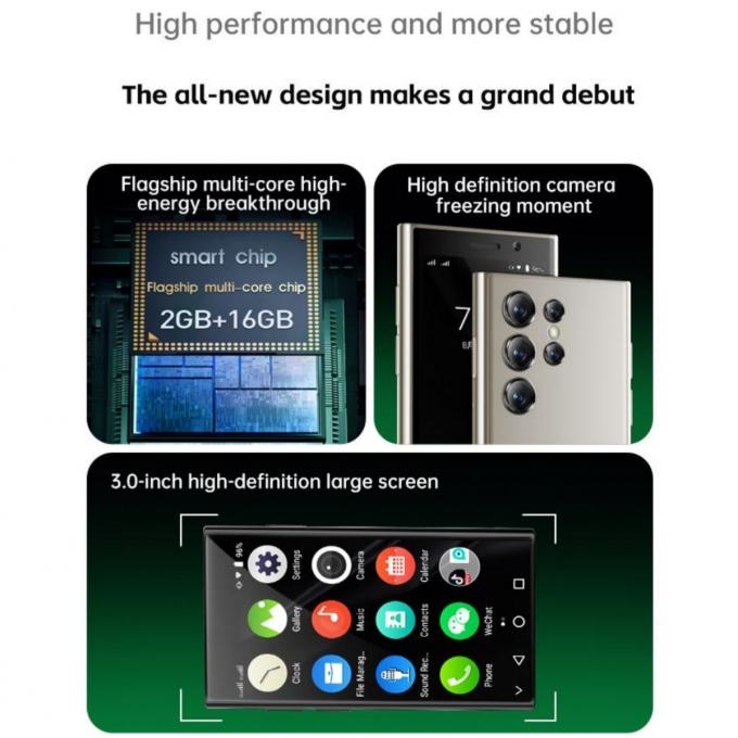 Mini 3G Smart Phone 3.0''Screen 2+16GB Type-C Charging 4.0 Bluetooth 2.4G Wi-Fi