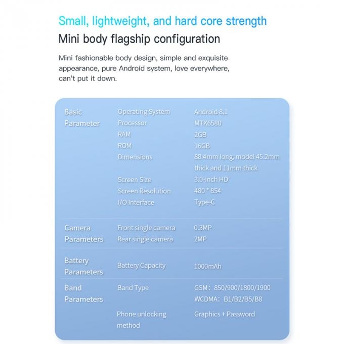 Mini 3G Smart Phone 3.0''Screen 2+16GB Type-C Charging 4.0 Bluetooth 2.4G Wi-Fi