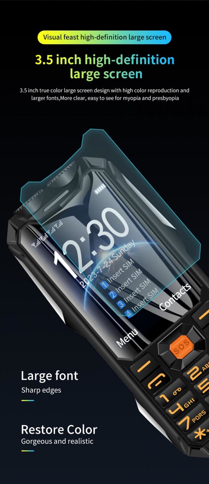 4 SIM Card 2G Cell Phone Flashlight FM Radio Q9 3.5 Inch Long Lasting