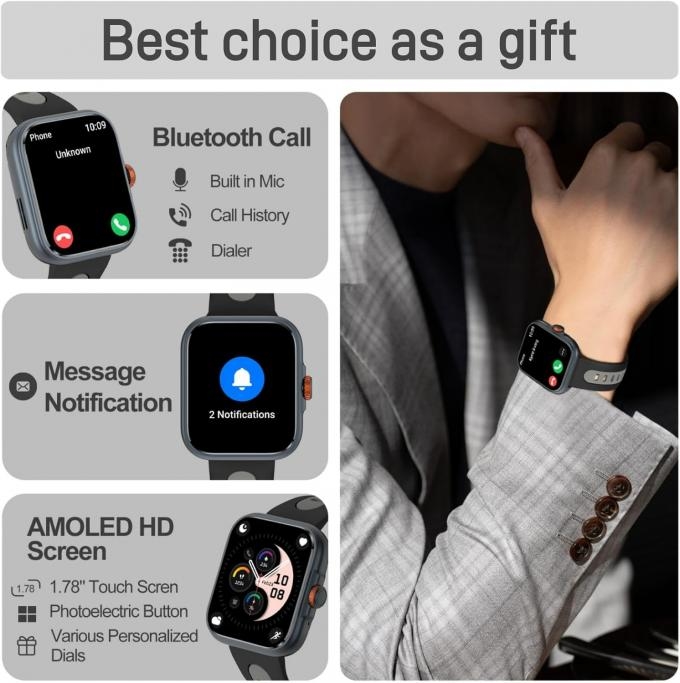 【1.78''HD AMOLED Large Display】: This Smartwatch Ultra features a 1.78-inch AMOLED display that offers unprecedented visual clarity and enjoys highly responsive touch sensitivity. And you can choose from over 100+ dials to suit your style, and you can set your favorite photo as the dial.