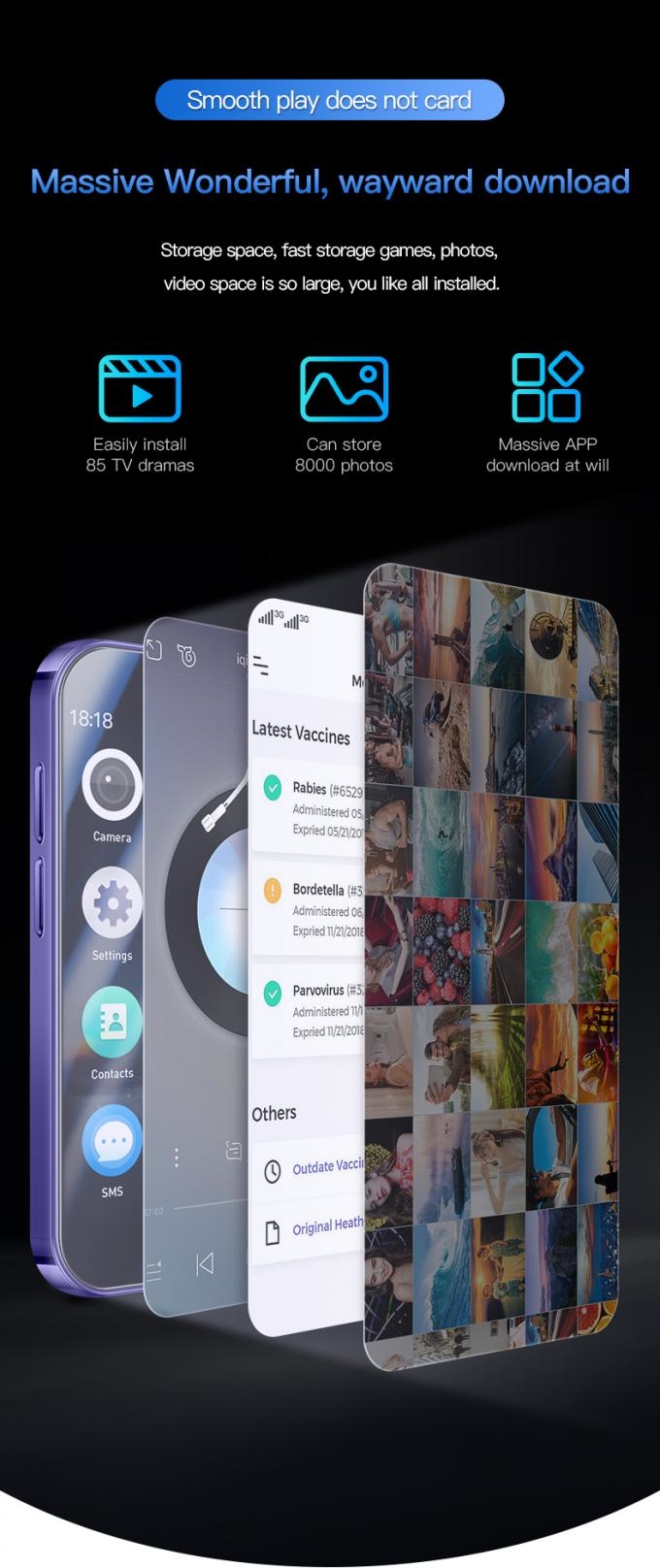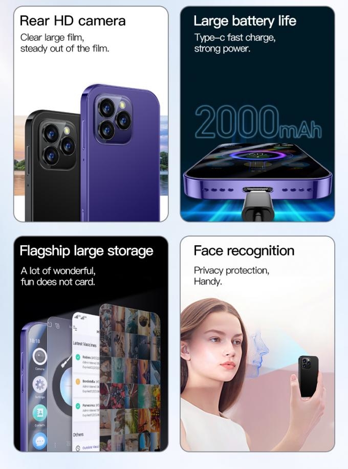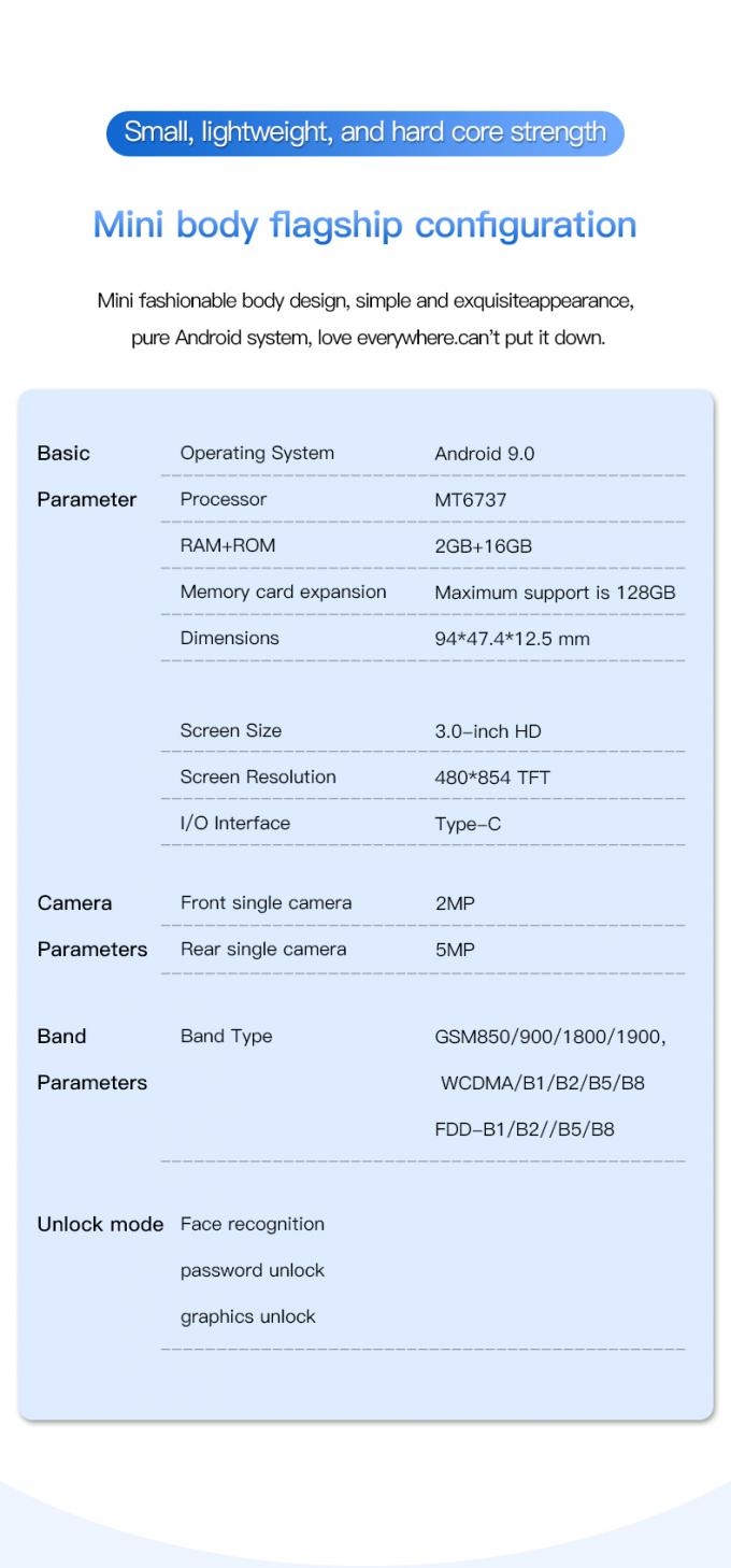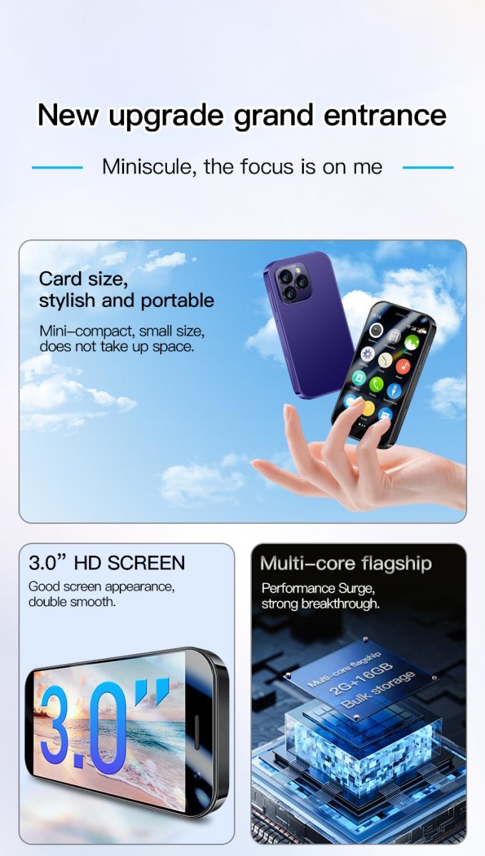 Mini 3G Smart Phone 3.0''Screen 2+16GB Type-C Charging 4.0 Bluetooth 2.4G Wi-Fi