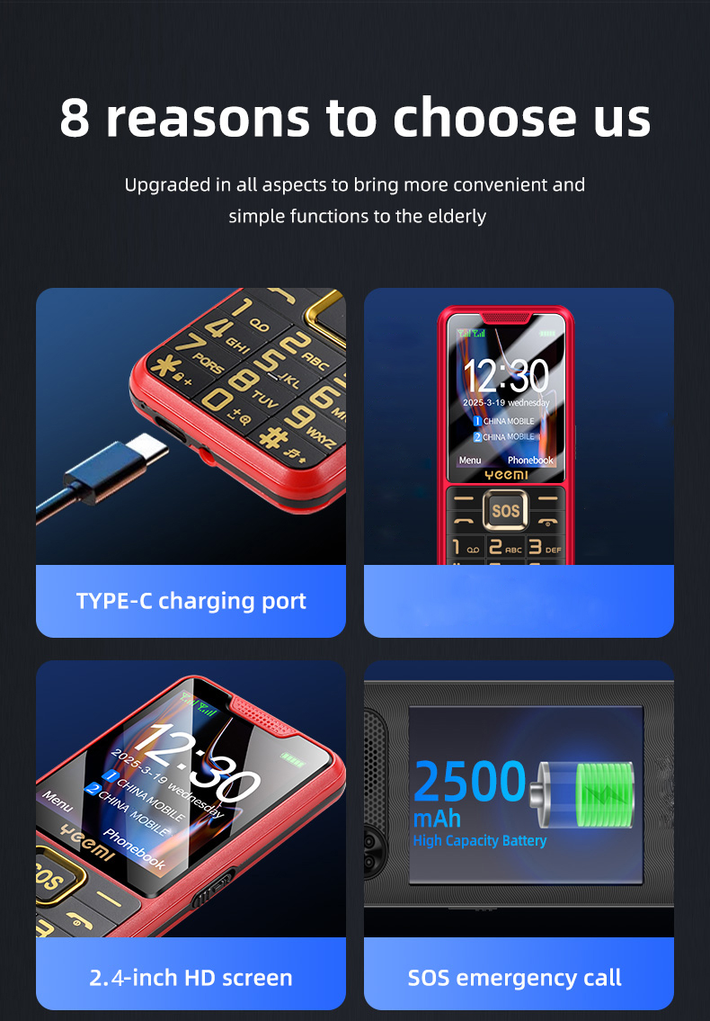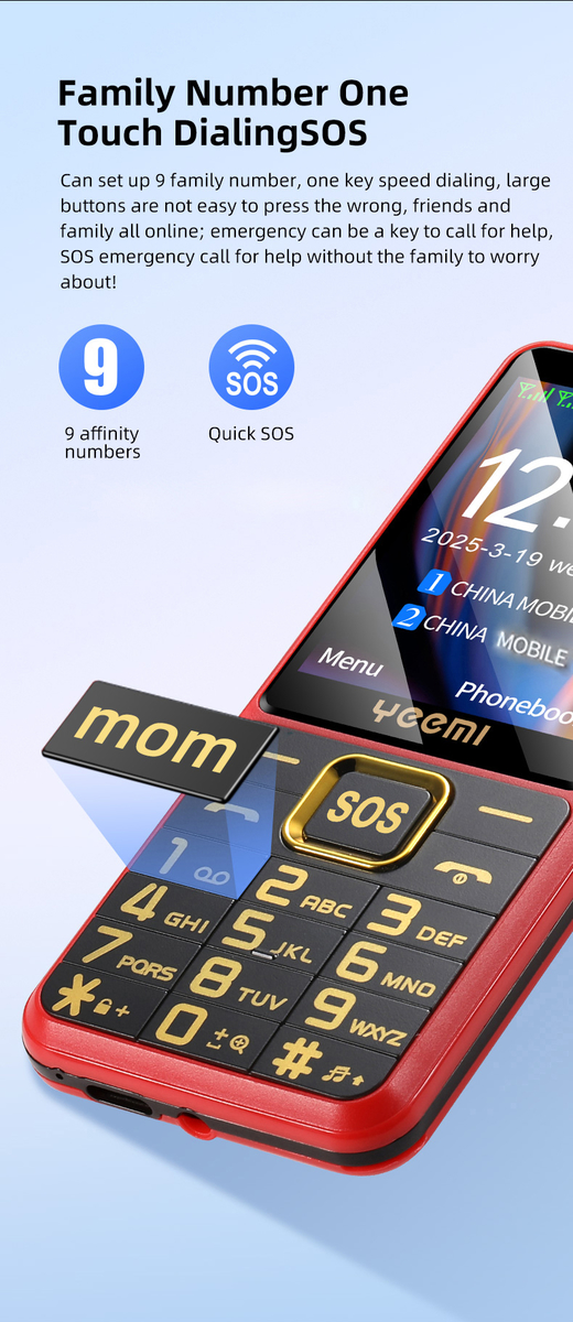 YEEMI Q8 2G Feature Phone 9 SOS Numbers Cell Phone For Elderly Waterproof