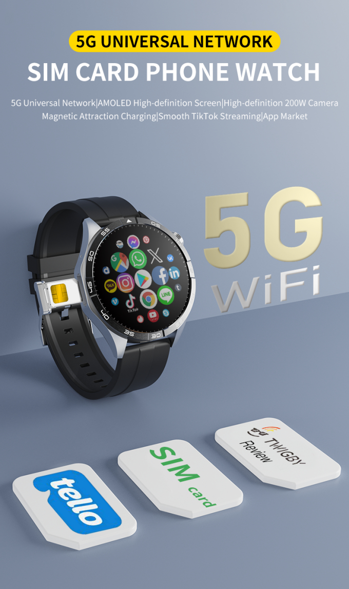 4G Smart Watch with 2300mAh Battery and Support for 2.4g/5g WiFi for Long Battery Life