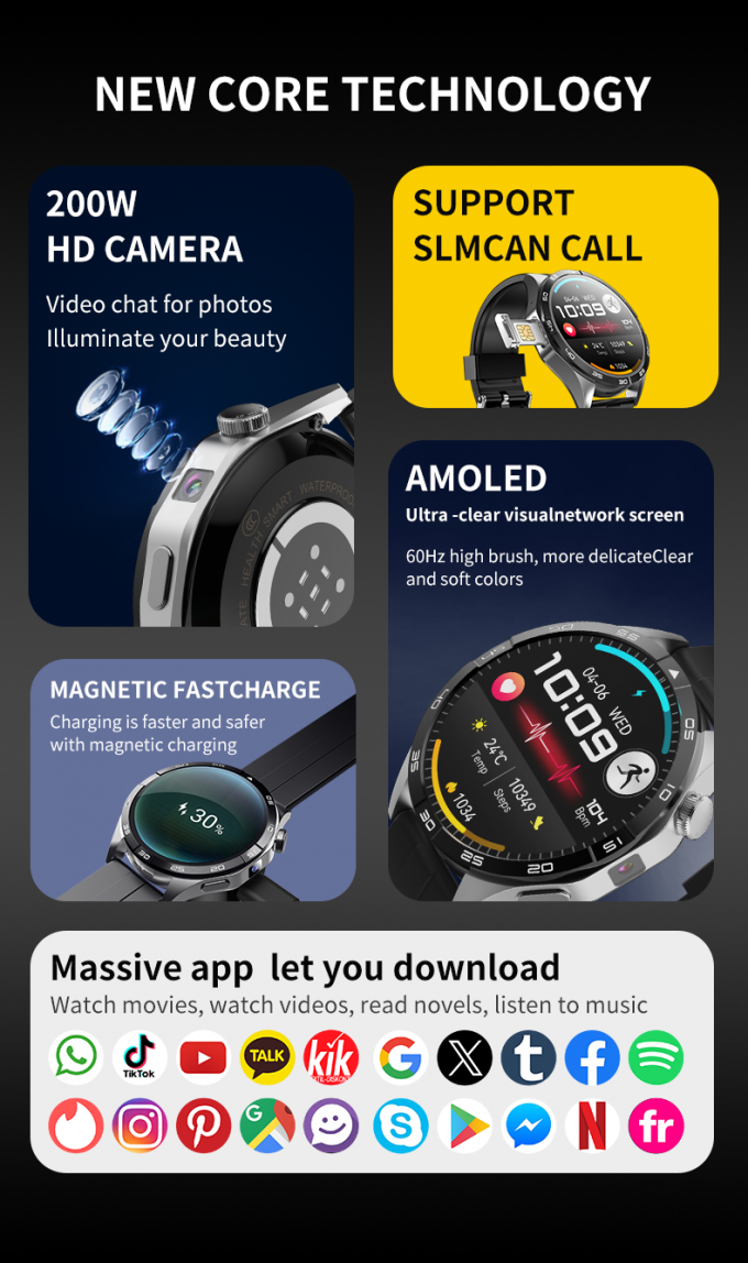 4. 1.43 inch 200W AMOLED screen with a resolution of 466*466;