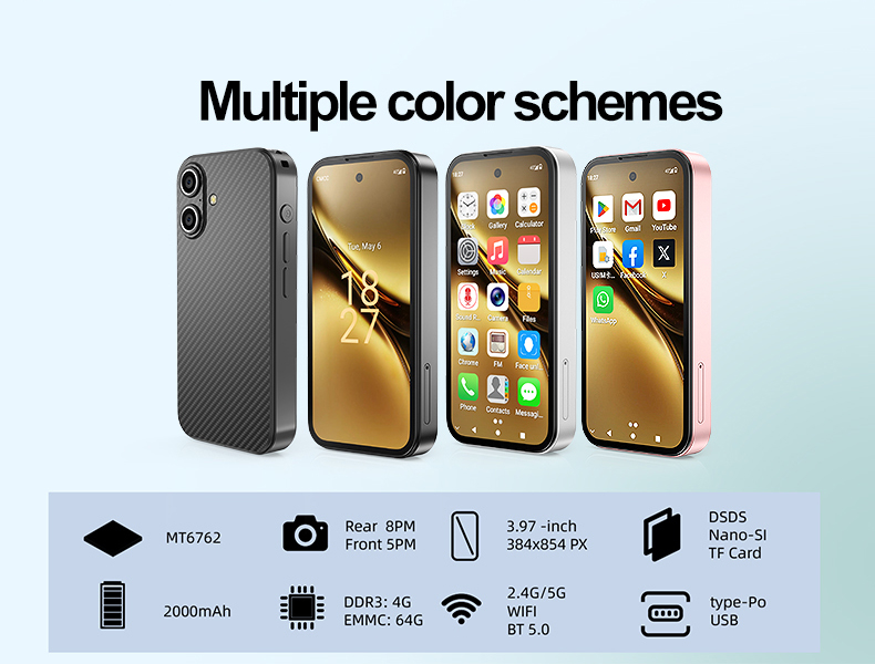 4+64GB Android 12.0 SOYES Q333 Small Phone 2000mAh Face ID 4G LTE Type-C OTG 3.58'' Screen