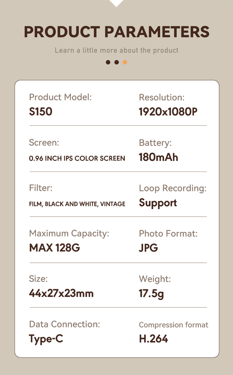 * Built-in 180mAh lithium battery with up to 50 minutes of recording time