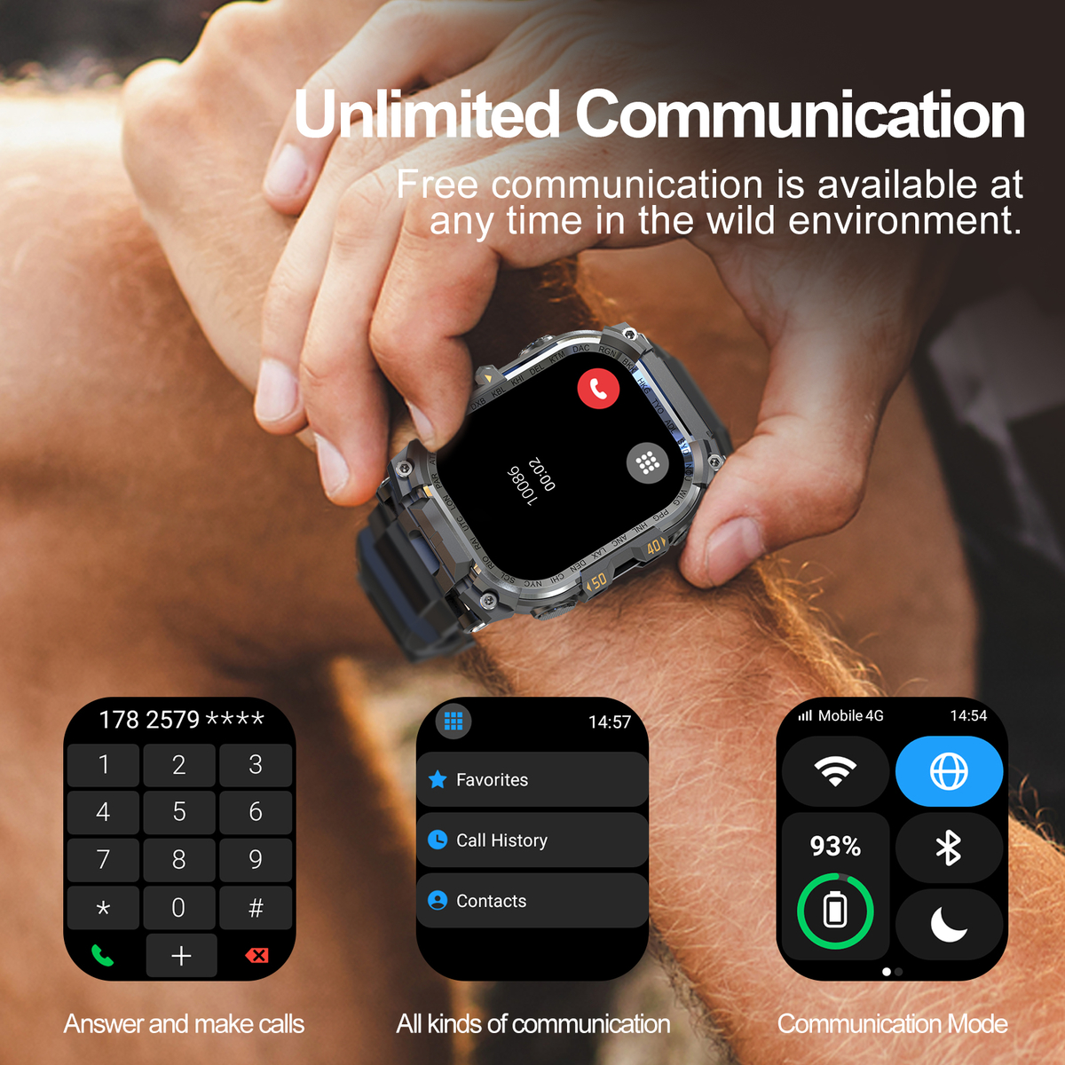 DM90 Outdoor Smart Watch 1.73''AMOLED IP68 Sleep Health Sports Round Shape Touch Watch