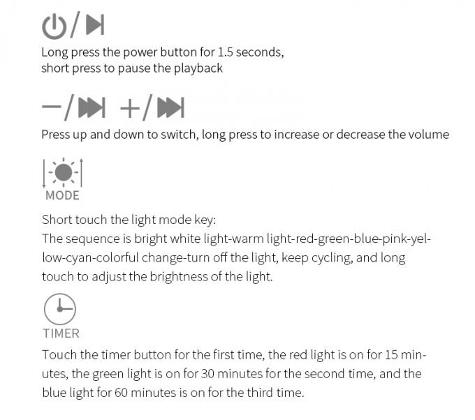 2. 12 music songs: 8 color lights/colorful gradient white noise atmosphere lights, convenient for night use.