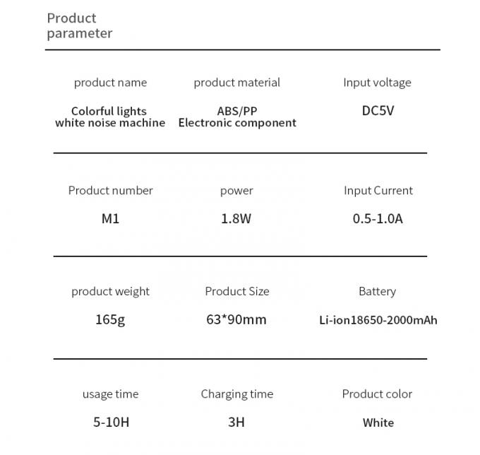 | WHITE: | 1 x White Noise Sound Machine 1 x Data Cable 1 x Instructions 1 x Internal Card 1 x PE Bag 1 x Packing Box |