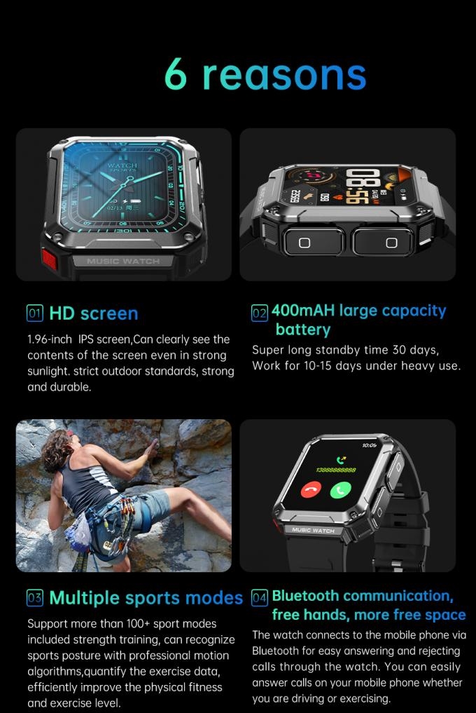 IPS Screen IP67 Waterproof Wireless Earphone Smart Watch Music Bracelet 1.52 Quot
