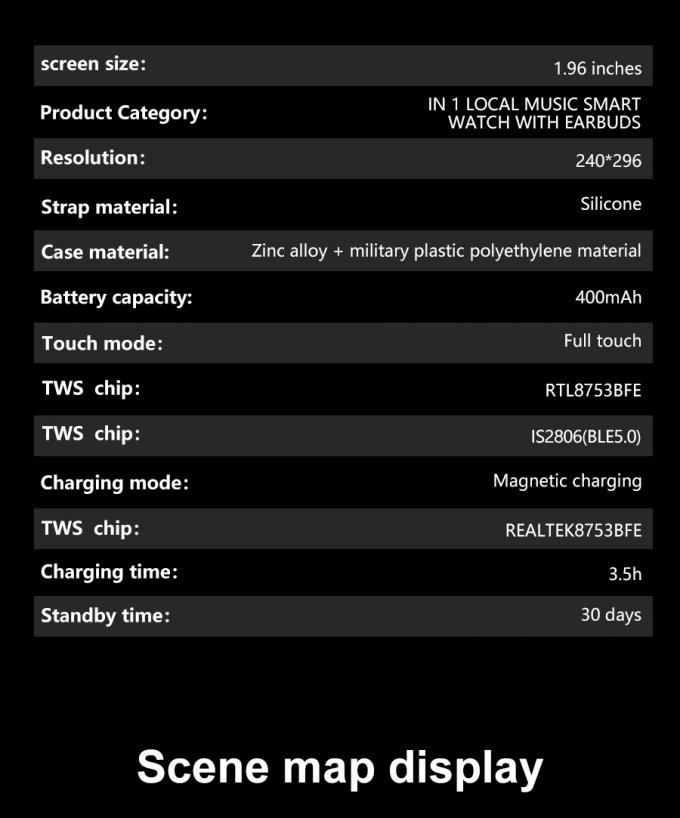 Wireless Earbuds and Local Music Smart Bracelet with TWS Smart Watch IPS Screen