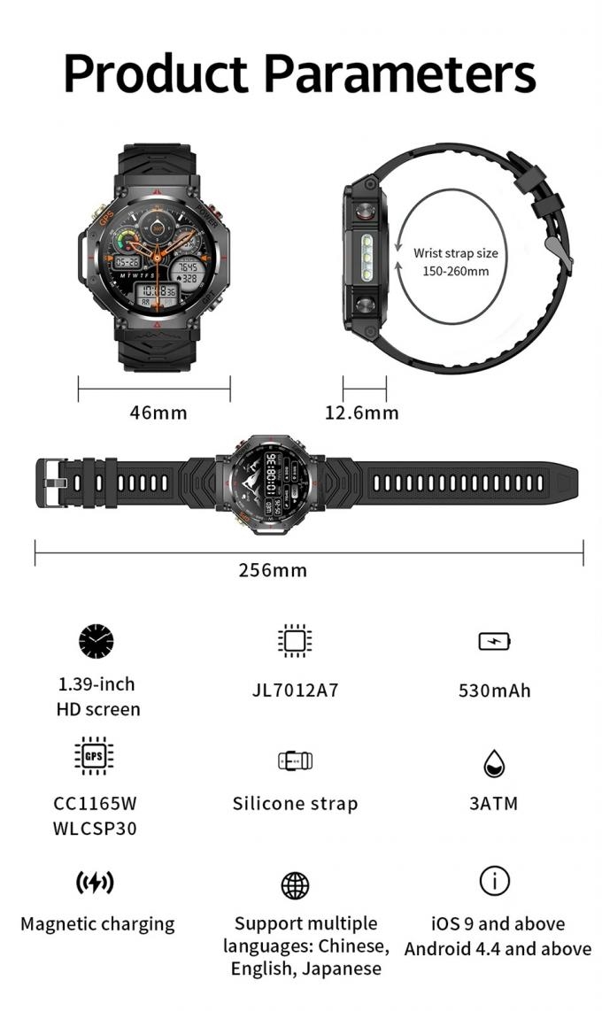 530mAh Battery GPS Smart Watch IP68 Waterproof Running Watch Fitbeing APP Compatible
