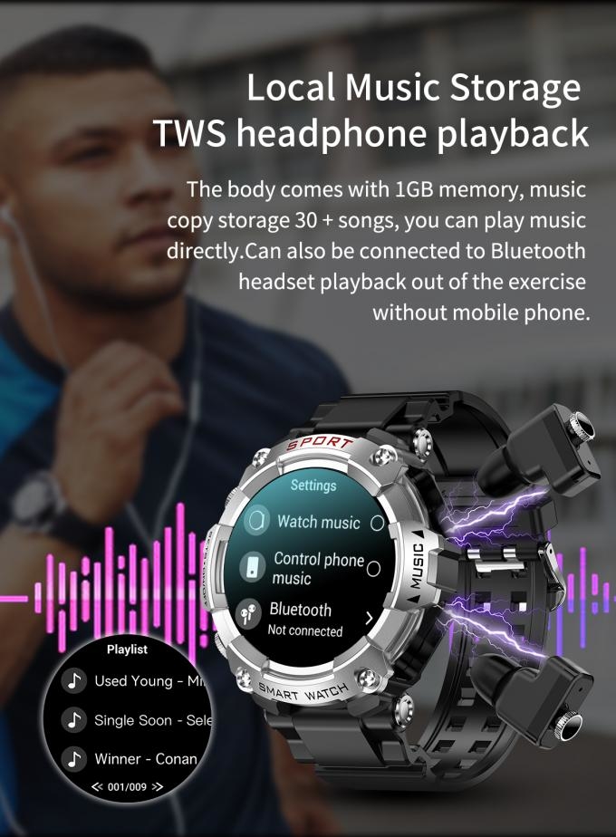 Waterproof TWS Smart watch with Local Music and Wireless Earbud for Maximum Enjoyment