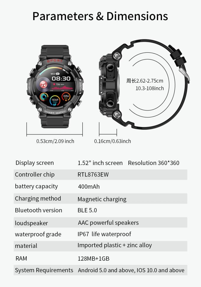 IP67 Waterproof Rating Sports Tracker True Wireless Headphones Fitness SmartWatch
