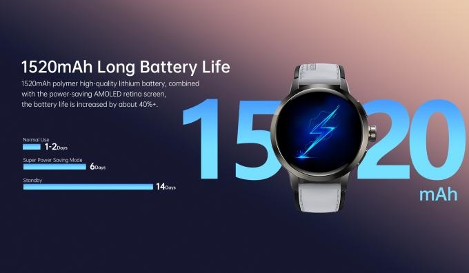 AMOLED MIPI Screen 4G Smart Watch with 750mAh Battery Capacity and Google Suite